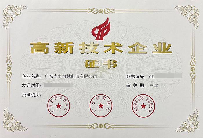 球友会机械制造有限公司于2016年成为国家高新技术企业